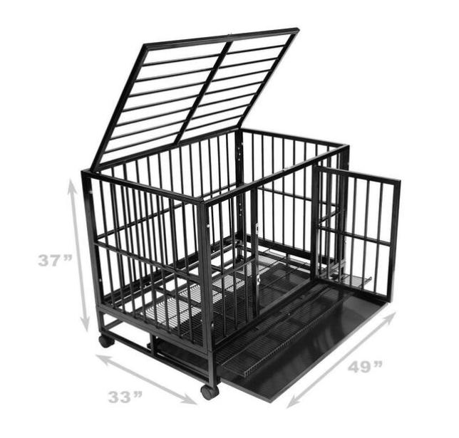 ప్రీమియం నిర్మాణం: పెంపుడు జంతువుల భద్రత, సౌలభ్యం మరియు దీర్ఘకాలిక మన్నికను నిర్ధారించడానికి వృత్తిపరంగా ఇంజనీరింగ్ చేయబడిన వాణిజ్య-గ్రేడ్ స్టీల్తో రూపొందించబడిన భారీ-డ్యూటీ, దృఢమైన పెట్ క్రేట్. పంజరం 1/2-అంగుళాల వ్యాసం (20-గేజ్) వెల్డెడ్ స్టీల్ గొట్టాలతో బలోపేతం చేయబడిన 3/4-అంగుళాల ఫ్రేమ్ను కలిగి ఉంది, ఇది పై నుండి క్రిందికి సమగ్ర బలం మరియు మన్నికను అందిస్తుంది.