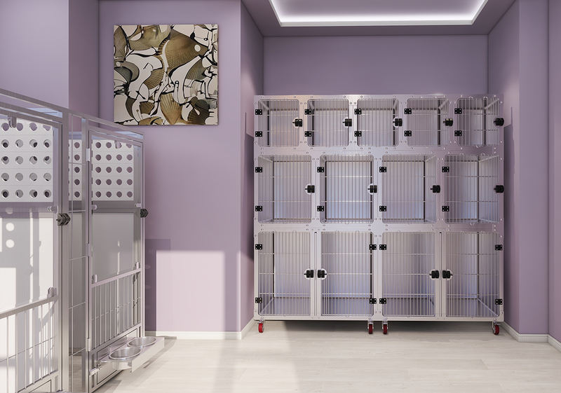 లోహాస్ సిరీస్ మా తాజా వాక్-ఇన్ కెన్నెల్ సిస్టమ్ను సూచిస్తుంది. మల్టీ-పర్పస్ యానిమల్ బోర్డింగ్ మరియు క్వారంటైన్ కేజ్ సిరీస్లోని అన్ని భాగాలు మీ అవసరాలు మరియు అందుబాటులో ఉన్న స్థలానికి అనుగుణంగా అనుకూలీకరించబడతాయి. ముందు తలుపులు, సైడ్ ప్యానెల్లు మరియు ఉపకరణాలు బహుళ కాన్ఫిగరేషన్ ఎంపికలను అందిస్తాయి మరియు వివిధ రకాల మెటీరియల్లలో అందుబాటులో ఉన్నాయి. మీ కలల కెన్నెల్ ఇక్కడ రియాలిటీ అవుతుంది! స్టెయిన్లెస్ స్టీల్, హై-డెన్సిటీ HDPE, టెంపర్డ్ గ్లాస్ మరియు/లేదా పౌడర్-కోటెడ్ స్టీల్ యొక్క సౌకర్యవంతమైన కలయిక విస్తృతమైన మెటీరియల్ ఎంపికలను అందిస్తుంది. రొటేటింగ్ ఫీడింగ్ డోర్లు, వన్-టచ్ మాగ్నెటిక్ లాచ్లు మరియు అప్రయత్నంగా పనిచేసే లిఫ్ట్-అప్ డోర్లు వంటి అనేక యూజర్ ఫ్రెండ్లీ ఫీచర్లను ఈ సిస్టమ్లో విలీనం చేయవచ్చు. మేము అన్ని విచారణలు, అవసరాలు మరియు బెస్పోక్ ఆర్డర్లను స్వాగతిస్తాము. మా ఇంజనీర్లు మరియు డిజైనర్ల బృందం మీ సూచన కోసం 2D/3D విజువలైజేషన్లను రూపొందించడానికి సంతోషిస్తుంది.